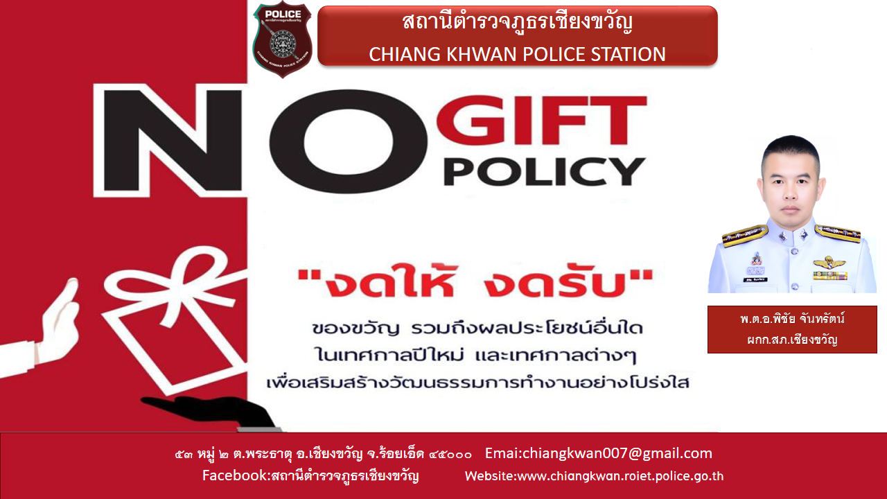 แสดงอินโฟกราฟิกนโยบายไม่รับของขวัญของกำนัลทั้งภาษาไทย/อังกฤษ